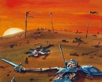 ŐSI CSATAMEZŐ (263. TEREPTÁRGY)Első pillantásra csak kisebb kupacokat veszel észre, de ahogy továbbmész, itt is, ott is megpillantasz a földből kiálló csontdarabokat. Ahogy kicsit kutakodni, nézelődni kezdesz, kiderül, hogy itt évtizedekkel, talán évszázadokkal ezelőtt hatalmas csata folyhatott. Mára ennek már nem sok nyoma maradt, de azért lehet, hogy érdemes körülnézni. Ehhez a KUT 30 parancsot kell kiadnod, vagy bekapcsolt Feltételes Kutatással kell az ősi csatamezőre lépned (de ezt fordulónként csak egyszer teheted meg). Ezenkívül szükséges, hogy legyen nálad ásó, amivel ásni kezdesz, és előfordulhat, hogy valamilyen hasznos dolgot találsz - de valószínűbb, hogy csak néhány elsárgult csontot kaparsz elő. Vigyázz azonban, mert az ilyen tömegsírokat rejtő vidékeken Leah szolgái az urak, és jaj annak, aki a Halálistenség sötét teremtményeit megbolygatja... Figyelem! Az ősi csatamezők kutatása egy idő után unalmassá válik, nem jelent igazi tapasztalatot. Ha ököl, szúró, vágó vagy ütőfegyver szakértelmed legalább 25-ös, akkor az ősi csatamezőn már semmilyen fegyver szakértelmed sem fejlődik. |