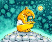 KRONOTAPÍR (286. SZÖRNY) Az alanori tudósok szerint a csatornán suttyomban átúszó kalandozók óriási bajt okoztak azzal, hogy megbolygatták a Thargodan csatamezőket, és a rettegett következmények nem is késlekedtek. Úgy tűnik, a Thargodan csatamezők mélyén szunnyadó ősi mágia megzavarásának eredményeképp repedés keletkezett a dimenziók között, és szerencsétlenségünkre pont az idő létsíkja keletkezett egy átjáró! Lehetséges, hogy Ghallán ennek következményeként az idő fel fog gyorsulni, de mintha ez nem lenne elég, ún. kronoteremtmények özönlöttek át, melyek érintésükkel zavart kelthetnek az időben. A kronotapírokat úgy tűnik, mágnesként vonzzák a Thargodan csatamezők: rövid időn belül (ha az időnek egyáltalán megmaradt a jelentése) el fogják őket árasztani. A kronotapírok az idő fázisai között való mozgásuk miatt gyakorlatilag sebezhetetlenek, bár a tudósok már dolgoznak azon mágikus anyag keresésén, amely a képességet semlegesíteni tudja. Egy jós szerint a megoldás a tiltott manaforrásban keresendő. |