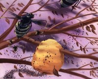 [204,57] Vált a terep: sűrű erdőben vagy. Azonnal észreveszed a feléd tartó lényt. Ráismersz a lényre. Egy darázsfelhő. Mivel esélytelen veled szemben, nyugodtan várod. (ld. enc.) Ha a szörny harcolni akar, ám legyen. Majd megmutatod neki.