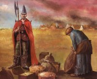 (Továbbmész...) [183,57] A terep változik: ismét síkságon vagy. Vékony, de tiszta vizű patakra bukkansz, amely északnyugatról folyik délkeletre. Feltöltöd a vizestömlőt. Ki nyitott szemmel jár, talál: esetedben egy kihívás tornyát. Ahogy cammogsz, egyszercsak hogy, hogy nem: kiszúrsz egy tündöklő szobrot. Elenios rád kacsint! Csodálatos érzés kerít hatalmába, miközben virágeső hull az égből. Vidáman gyűjtöd csokorba a szépséges virágokat, ami egy mocsári penke és néhány mákrózsa. [mákrózsa virág ->eldobod] Észreveszel egy oltárt. Raia hívői építették. Ez hihetetlen! A szemed elé táruló látvány nem más, minthogy Leon Silver I. hatalmának elenyésző morzsájával dezintegrál egy dombnyi kupac káosz-szimbólumot. Érdekes műalkotás... Talán érdemes lenne neked is megpróbálkozni egy ilyen szoborral. Megérezve a magas fűből érződő szagot, rájössz, hogy valami rád leselkedik. Amint közelebb ér rögtön tudod, hogy mi az! Egy quwarg királynő. Nyugodtan várod, hogy megleckéztethessed a pimasz lényt.