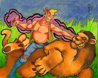 (Vándorcirkusz:) Törpék, óriások, zsonglőrök, erőművészek és bohócok. Először nem is tudod hova keveredtél, majd mint a villám ér a felismerés: ez a vándorcirkusz. Már úgyis bizsergett a tenyered némi megpróbáltatás után, úgyhogy határozottan a sátrak közé lépsz. Aztán arra leszel figyelmes, hogy egy törpe rohan utánad, majd aranyat kér belépő gyanánt. Közlöd vele, hogy most nem mennél be, csak nézelődtél kicsit, majd továbbindulsz. [Jelenleg nincs olyan hely, ahol próbálkozhatnál (vagy nincs rá aktív CIR parancsod).] Gyanús mozgást látsz a fák között. Egy Napsörény nem ijeszthet meg. Nyugodtan várod a találkozást. Úgy döntesz, itt az ideje, hogy demonstráld hatalmadat. Rárontasz a szörnyre.