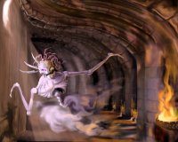Ellenfeled varázstudó! Elmond magára egy számodra ismeretlen védekező varázslatot. Mélyen koncentrálva, megidézel egy istenítélet varázslatot, majd ellenfeledre küldöd. A támadásnak sajnos semmi eredménye sem volt. Gyógyulsz (+4 életpont). Ellenfeled egy kézmozdulatot tesz, majd ellő egy sötét halál varázslatot. Semmi eredménye! Ellenfeled puha ütés varázslatot lő rád. A támadásnak - hála az égnek - semmi eredménye sem volt. Mérg. vas dobónyilat hajítasz a másik védtelen testébe. Lecsillapítod légzésed, felkészülve Muo-Tie Nyugalmának bevetésére. Elrepül 3 mérg. vas dobónyíl. Alaposan megsorozod a kísértetvarázsló áttetsző karját. (3 támadással 143 életpontot sebezve.) A seb azonnal beforr! Elszántan ellenfeledre támadsz. Haláltáncba kezdesz ellenfeled körül. Ki-tudásod egy igazi tesztje előtt állsz: az Erő Öklét készülsz alkalmazni. Ököllel halálos csapásokat osztva péppé vered a kísértetvarázsló testét. (4 támadással 500 életpontot sebezve.) Vámpirizálsz (+101 életerő). Megelőző ütés! Ököllel megcsapod a kísértetvarázsló bal lábát. Kritikus ütés! (1 támadással 114 életpontot sebezve.) Vámpirizálsz (+23 életerő). A kísértetvarázsló karmaival megsebesíti a válladat. (1 támadástól 20 életpontot vesztesz.) Mélyen koncentrálva, ellenfeled megidéz egy sötét halál varázslatot, majd rád küldi. Semmi hatás! A kísértetvarázsló most már meggondolná a harcot, de egy kicsit elkésett. Megölted!