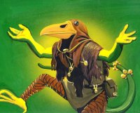 (Továbbmész...) [289,16] Még mindig hegyvidéken vagy. A sziklák mögül kibukkanó lény nem tudott meglepni. Felismered a közeledőt. Csak egy selyemszárnyas. Nem jelenthet különösebb problémát. Az ellenfeled láthatólag harcra készül. Te felkészülten várod.