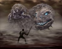 (Továbbmész...) [453,7] A bozótos vidéket zöld síkság váltja fel. A zöld mező egyhangúságát csak néha töri meg egy-egy facsoport. Ananászvirág illatát hozza a szél. Ki nyitott szemmel jár, talál: esetedben egy oltárt. Leah hívői építették. Gyorsan ellátod a sebeidet: +32 életerő. A feléd lopakodó szörny nem volt elég óvatos, ezért már messziről kiszúrod. Pár lépést teszel a szörny felé, és felismered. Egy ködsárkány. (ld. enc.) Az ellenfeled úgy döntött, eljött a halálod napja. Szerinted pedig az övé.