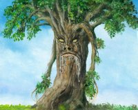 [270,97] A bokrok megritkulnak, árnyékba vonja őket az új terep, a ritka erdő. Oldalt pillantva, meglátsz egy szent tölgyfát. A távolban egy gigászi csatajelenetet ábrázoló szoborcsoportot látsz. A részleteket is alaposan kiértékelve feltűnik a nagy kavarodás közepén egy apró alak. Ez nem más, mint egy Chara-din avatárja, amint Chara-din hordáit szecskázza apróra. A torz lények tömege sem bírja legyűrni, mert Ghalla hét valódi istene támogatja. A madarak már messziről jelzik VALAMI érkezését. Csak egy fertőzött ent. Megvető mosollyal várod a találkozást. (ld. enc.) Mivel minden egyéb kommunikációs lehetőséget kizár a szörny agresszív magatartása, felkészülsz a csatára.