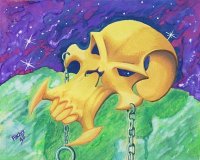 [360,64] Egy kisebb településhez érkeztél. Valami egészen sajátos dologra bukkansz: egy tábla, felirattal. Elolvasod: " Qvill városa innét baromi messze fekszik...-Lüke " Egyszercsak megtorpansz. Hohó, nicsak, mit fedeztél fel: egy nekrofunt. Utad során felfedezel egy főutcát. A helyi grafiti egyik megnyilvánulására, egy feliratos táblára bukkansz. Kiböngészed a szöveget. " Vándor, figyelmezz lépteidre, a város az Ördögi Kör védelme alatt áll! " Mindig van kedved kockázni, amikor alkalmat látsz rá, így most sem utasítod vissza a lehetőséget, amikor meglátsz egy kisebb csoportosulást, ahol pörögnek a kockák. A szerencse most sem hagyott el, nyertél 4 aranyat. Gyorsan ellátod a sebeidet: +32 életerő.