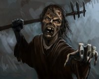 (Továbbmész...) [461,8] Továbbra is síkságon vagy. A zöld mező egyhangúságát csak néha töri meg egy-egy szomorúfűz. Fehér nyárfavirág szállong a levegőben. Ahogy cammogsz, egyszercsak hogy, hogy nem: kiszúrsz egy oltárt. Fairlight hívői építették. Szerencsédre hamar észreveszed a fűben feléd lopakodó valamit. Úgy gondolod, hogy a közeledő bámulatos zombi nem jelenthet komoly veszélyt. (ld. enc.) Végre egy kis testmozgás. Fincsi!
