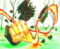 Üdvözlésképpen egy vakító fény varázslatot ereszt meg irányodba ellenfeled. Az Istenek Talizmánja semlegesíti a varázslatot. Megmarkolva a triton szigonyt a másikra rontasz. Felkészülsz a spirituális extenzióra. Triton szigonnyal tökéletesen perforálod az óriás lámpáshal testét. (5 támadással 451 életpontot sebezve.) Óriási tüskéi sebeznek. (-112 életpont.) Vámpirizálsz (+1 életerő). Légelementálod letaszítja a lábáról ellenfeledet. (40 életpontot sebezve.) Távolról hullámkeltés varázslatot lősz a másikra. 229 életpontot sebeztél. Váratlanul egy szellempárduc jelenik meg melletted, és karmaival az ellenfelet kezdi csépelni. (43 sebzést okozott.) Fényaurád működik (20 ép-t sebezve). Az óriás lámpáshal állkapcsa ártalmatlanul csapódik össze melletted. Ellenfelednek annyi! A víz tovasodorja holttestét.