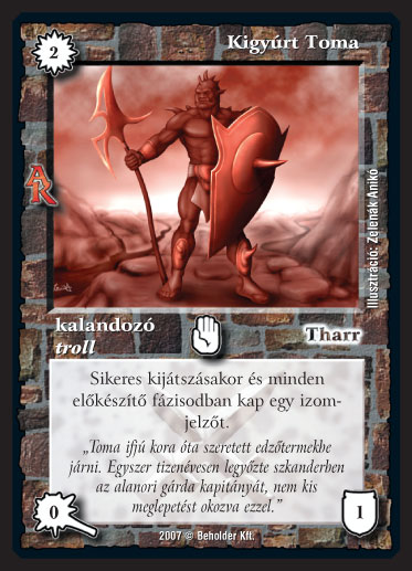 Szinesítő szöveg: "Toma ifjú kora óta szeretett edz?termekbe járni. Egyszer tizenévesen legy?zte szkanderben az alanori gárda kapitányát, nem kis meglepetést okozva ezzel."
