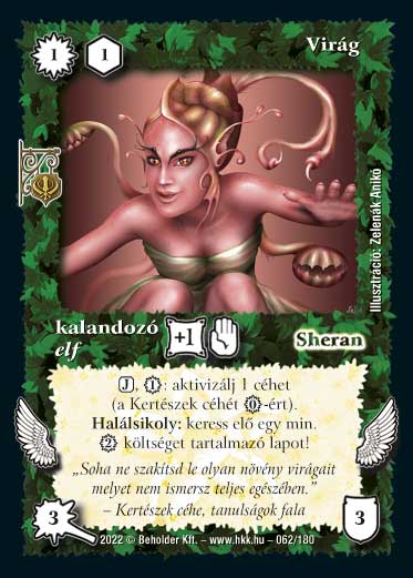 Szöveg: (J), 1_VP: aktivizálj 1 céhet (a Kertészek céhét 0_VP-ért). Halálsikoly: keress elő egy min. 2_VP költséget tartalmazó lapot!