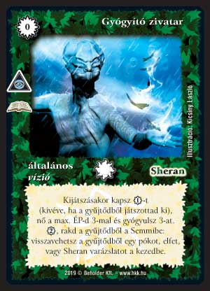 Gyógyító zivatar (8): Az imént már említett Búvópatak - Suu’zy csillogása páros egy elég jó kis alternatívát kap a Gyógyító zivatar megjelenésével, ami ad egy kis segítséget a drágítások ellen, mégsem kukázza önmagában az ellenfél stratégiáját a korlátozás miatt. Manát egyszer kérhetünk csak rá, tehát hosszú távon ugyanakkor visszaadja a lapot, ami óriási dolog – egyben egy újabb remek kártyát köszönthetünk az egyre bővülő Sheran-pók-elf vonalban. És azért az a körönként 3 gyógyulás max. ÉP-be – mindez teljesen ingyen - sem éppen nevezhető éppen elhanyagolhatónak.