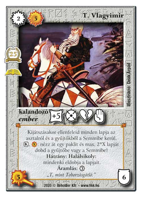 T. Vlagyimir (8): Viszonylag kevés pakli van, ami megengedhet magának egy ennyire drága lényt, abban a kevésben viszont óriásit fog szólni, hiszen megcounterelni alig néhány lappal lehet (már olcsón, persze), a pusztítás pedig, amit okoz, garantált onnantól, akár az asztalról, akár a kézről van szó. És ha ez még nem lenne elég, akkor utána még módszeresen ki is pucol az ellenfél deckjéből minden megoldást (akár még Zarknod bilincse mellett is a fogalmazás miatt), így akár még tempóból is megérheti kirakni. A manaügyileg igen erős áramlása miatt a korai játékban sem lesz haszontalan egy Lassan járj! mellett például, de ezen funkció miatt én a dobótőrös Bűvös erdőbe is egészen biztosan használnám belőle a három darabot.