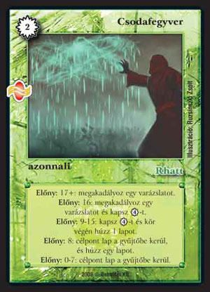Elembivos (6): Nagy befektetéssel, egy kis kockázattal körönként dobathatunk egy általunk választott lapot. Mivel többnyire sok olcsó lappal játszanak, jó eséllyel ingyen fogunk dobatni. Sajnos benne van a komoly bukás lehetősége is, hisz elehet, hogy eltékozlunk négy varázspontot azért, hogy megnézzük az ellenfél kezét.