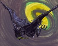 AURAPOLLÁTOR (222. SZÖRNY)Az Aurapollátor egy másik létsík, a Pusztulás Földjének lakója. Izmos, ébenfekete testén két hatalmas bőrszárnyat visel. Az ősi feljegyzések szerint ezt csak a létsíkok közötti utazásnál tudja használni. Pofája leginkább egy iszonyú kínok között elpusztult ork meggyötört ábrázatára hasonlít. Ujjnyi vastag, tűhegyes fogai közül mélyzöld színű, habos nyál csorog. Önszántából Ghallára nem tud átjönni, de kasztroplanáris csatornákon könnyen megidézhető, hála vele született mentális képességeinek. Kósza hírek szerint némely Thargodanok hátasállatként használják, mert meglepően hűséges gazdájához. |