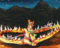 (Továbbmész...) [126,74] Síkság, továbbra is csak síkság. Valahonnan csengő madárdal száll feléd. A feléd lopakodó szörny nem volt elég óvatos, ezért már messziről kiszúrod. A feléd közeledő quwarg királynő mosolyt csal ajkaidra. Nagyot ásítasz, amíg vársz rá. Felkészülsz, hogy minél jobban el tudd kalapálni az agresszort.