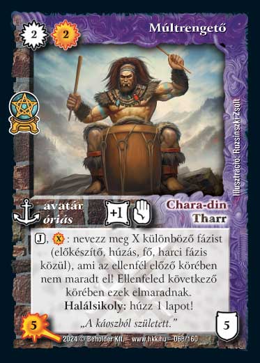 Szöveg: (J), (X): nevezz meg X különböző fázist (előkészítő, húzás, fő, harci fázis közül), ami az ellenfél előző körében nem maradt el! Ellenfeled következő körében ezek elmaradnak. Halálsikoly: húzz 1 lapot!