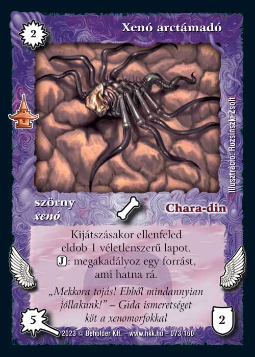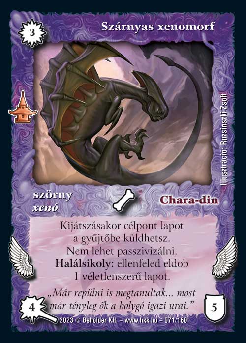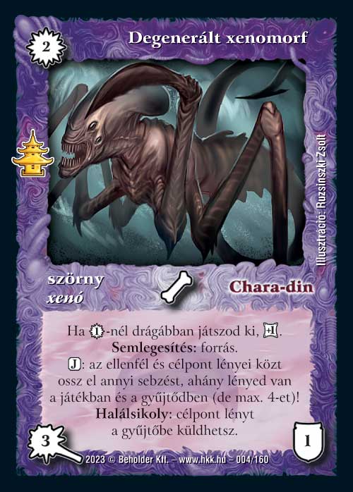 A legtöbbször idézett lap volt a tesztelésen, ezt látatlanban ki merem jelenteni. Egyébként nagyon hasonló az Erős erejéhez. Olyan szempontból gyengébb annál, hogy nem ingyenes, ami nyilván hátrány, viszont a 4. körtől is van még egy hasznos képessége, ez nagyon jól használható lappá teszi. A kiegészítő spoiler lapja. Én sajnáltam, hogy nem került rá a laphúzást tiltó képessége a régi verziójáról, de minden azért nekem sem jár :)