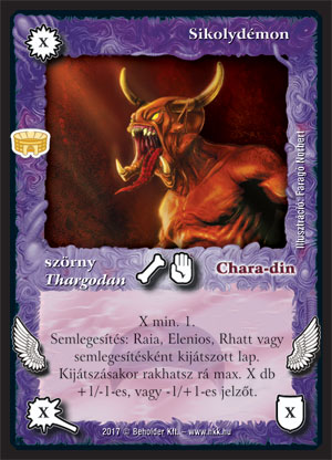 Sikolydémon (7): Ez szerintem tipikus példája a "majdnem" jó lapnak. 1 manáért semlegesíteni alapvetően jónak számít, a kérdés itt mindig az, hogy mennyire széles a lapkészlet, ami ellen jó, illetve hogy "üresben" kirakva mennyire hasznos a kártya. Nos, utóbbira nagyjából az a válasz, hogy semennyire (oké, 10+ manánál magában kivégzi az ellenfelet, de ez elég valószínűtlen), így marad az első szempont. A lapon szereplő kitétel az összes használt kártya nagyjából felére lehet igaz jóindulattal, ami - A becsület helyreállításából és a Démoni mágiából kiindulva - alighanem kevés lesz az üdvösséghez.