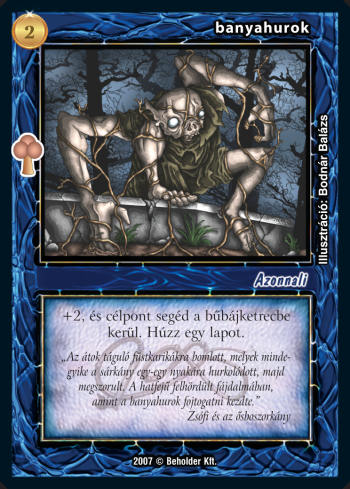 Szinesítő szöveg: "Az átok táguló füstkarikákra bomlott, melyek mindegyike asárkány egy-egy nyakára hurkolódott, majd megszorult. A hatfejű felhördültfájdalmában, amint a banyahurok fojtogatni kezdte." Zsófi és az ősboszorkány
