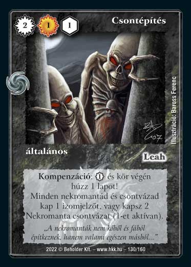 Szöveg: Kompenzáció: 1_VP és kör végén húzz 1 lapot! Minden nekromantád és csontvázad kap 1 izomjelzőt, vagy kapsz 2 Nekromanta csontvázat (1-et aktívan).