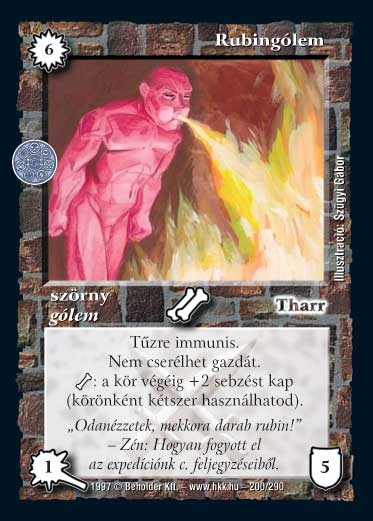 Hatalom Kártyái kártyalap - Rubingólem |  | A lap felújított változata (ahogy egy késõbbi kiegészítõben megjelent)