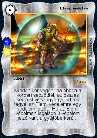 Szöveg: Minden kör végén, ha ebben a körben sebződtél, az összes sebzést visszagyógyulod, és tegyél az Elemi védelemre egy védelem jelzőt. Ha az Elemi védelmen legalább 3 védelem jelző van, a gyűjtőbe kerül.