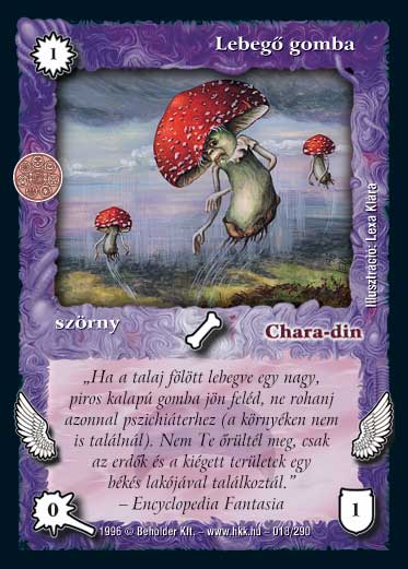 Szinesítő szöveg: "Ha a talaj fölött lebegve egy nagy, piros kalapú gomba jön feléd, ne rohanj azonnal pszichiáterhez (a környéken nem is találnál). Nem Te őrültél meg, csak az erdők és a kiégett területek egy békés lakójával találkoztál." - Enciklopedia Fantasia