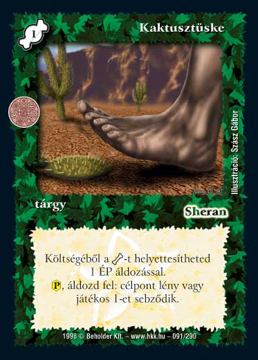 Szöveg: Kijátszásakor a szörnykomponenst helyettesítheted 1 ÉP feláldozásával. (P), áldozd fel a kaktusztüskét: célpont lény vagy játékos egyet sebződik.