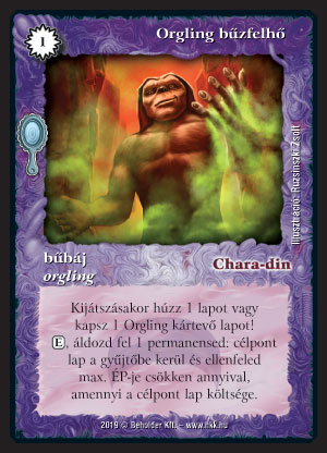 Szöveg: Kijátszásakor húzz 1 lapot vagy kapsz 1 Orgling kártevő lapot! (E), áldozd fel 1 permanensed: célpont lap a gyűjtőbe kerül és ellenfeled max. ÉP-je csökken annyival, amennyi a célpont lap költsége.