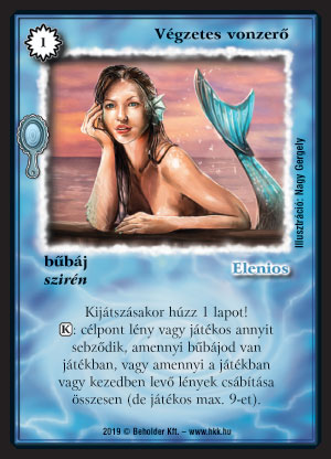 Szöveg: Kijátszásakor húzz 1 lapot! (K): célpont lény vagy játékos annyit sebződik, amennyi bűbájod van játékban, vagy amennyi a játékban vagy kezedben levő lények csábítása összesen (de játékos max. 9-et).