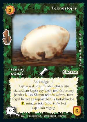 Szöveg: Anti-mágia: 1. Kijátszásakor és minden előkészítő fázisodban kapsz egy aktív teknősporonty jelzőt (1/1-es Sheran teknős szörny, nem foglal helyet az őrposztban) a tartalékodba. (P): minden teknősöd +1/+1-et kap a kör végéig.