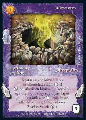 Szöveg: Kijátszásakor húzz 1 lapot és ellenfeled veszít 1_VP-t! (K), ha sikeresen kijátszol a kezedből egy orglingot vagy egy olyan lapot, aminek a költsége []-t tartalmaz, ellenfeled max. ÉP-je csökken 2-vel és veszít 1_VP-t.