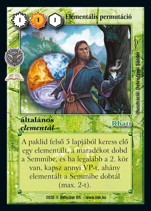 Ha már Rhatt a színe, A sors keze és a Tiltakozás mindig befér, Fairlightból egy kis Agybénítás (2025) meg Zsebdimenzió, Eleniosból pedig Agytunkoló, és hogy véletlenül se legyen kevesebb kánterünk, a Léleksorvasztás és a Tűztomboló is mehet be. Én játszottam a Rumos kulacsot is, van bőven mihez beáldozni. A kiegészítő pakliba pedig mehet a Zanzabáló, hiszen ő is elementál.