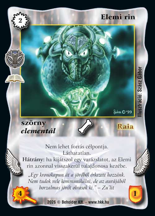 Talán ő az egyetlen elementál, aki nem fog az elementál versenypakliba bekerülni, mivel nem ad lapelőnyt semmilyen formában. De Veszélyes fajon, vagy valamilyen korlátozottabb formátumon lehet vele kísérletezni, hátha jól tud kezelni bizonyos fenyegetéseket.